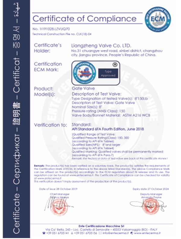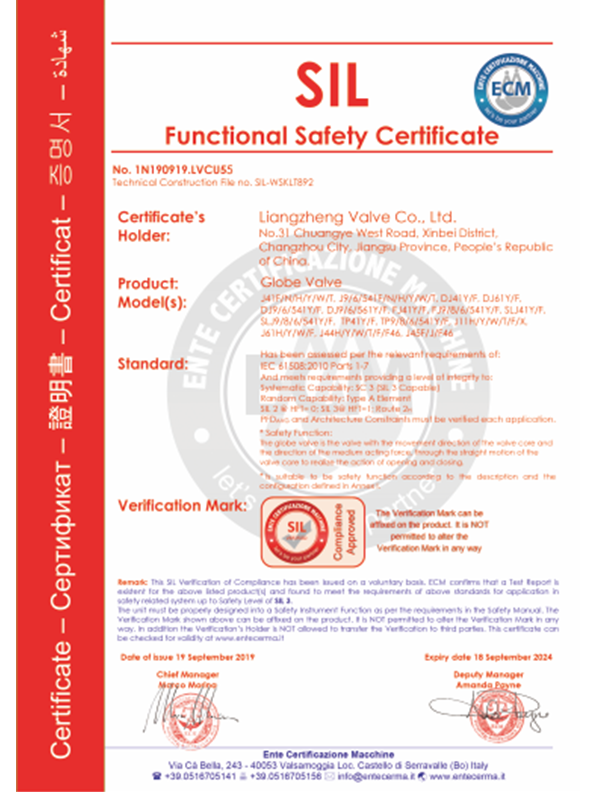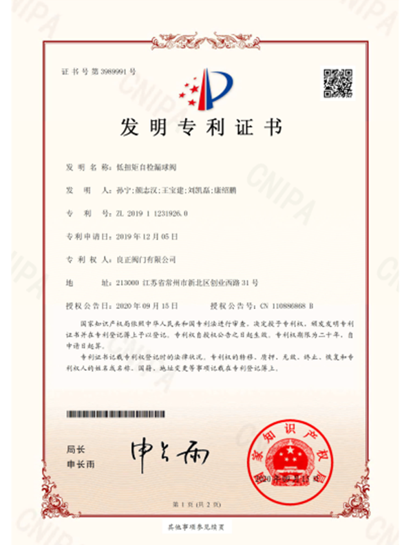 良正閥門均通過了”TS”特種設備制造許可A級認證,API6D美國石油協會認證,ISO9001國際質量體系認證,ISO14001環境體系認證,ISO45001職業健康安全管理體系認證,德國南德TUV頒發的API607防火認證,SIL3安全評估證書,CE歐盟證書,兩化融合證書,知識產權貫標證書,AA計量、AAA測量體系等證書。
